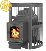 Банные чугунные печи серии Легенда Стандарт (ДТ-4С) укомплектованы чугунной не герметичной дверцей Везувий ДТ-4С с жаропрочным стеклом «SHOT ROBAX». и конвекционно-вентилируемый кожухом "Стандарт". Конвекционно-вентилируемый кожух "Стандарт" изготовлен из металлического прутка диаметром 6мм покрашенной черной термостойкой краской.